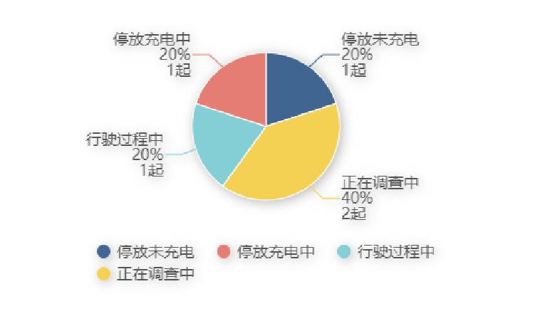 一起是车辆线路电气故障(占20%),四起是正在调查的(占80%)。