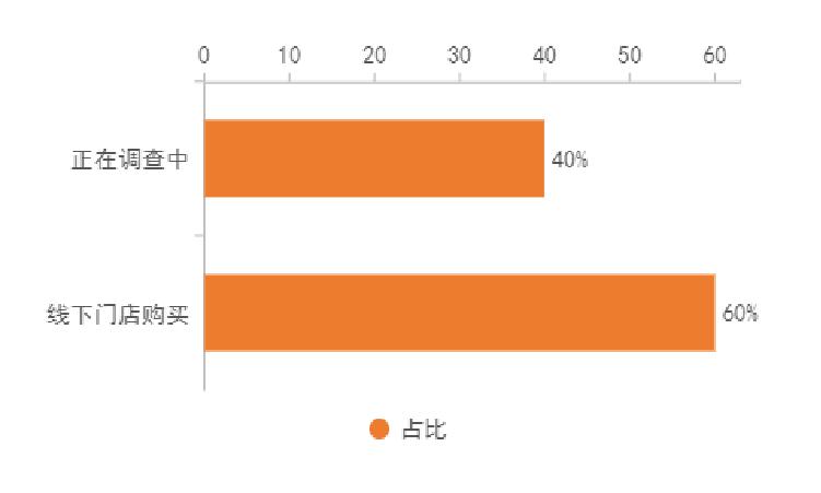 在线下商店购买电动自行车时,发生火灾的比例为60%,正在调查中的比例为40%。