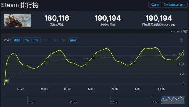 SteamDB 资料显示,这个作品在 Steam 该平台的在线峰值再创新高,已达到新高 190,194 人类,截至发稿时仍有近似 18 游戏中的万玩家。