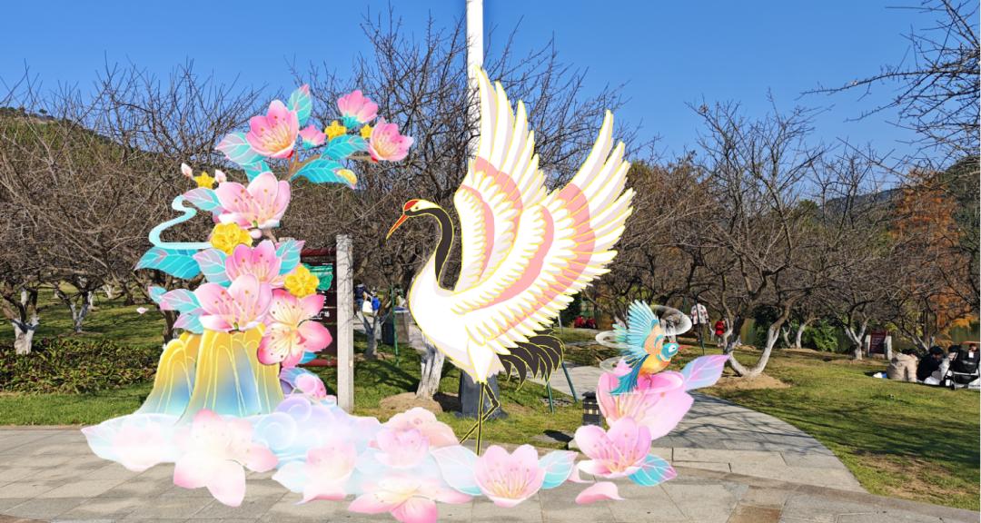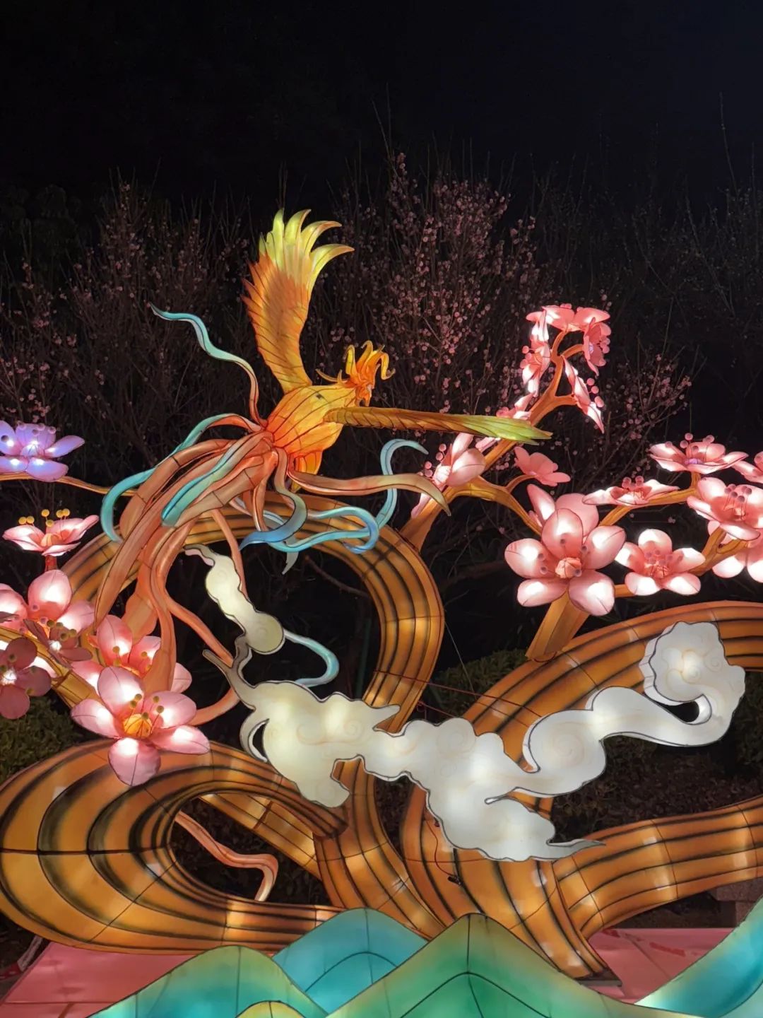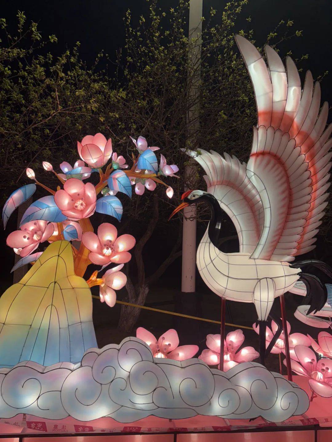 声乐动是传统灯笼不可或缺的,比如中心线灯组的喜雀和西关苑灯组的鹤。它们的翅膀会轻轻拍打,给灯光增添很多动感。