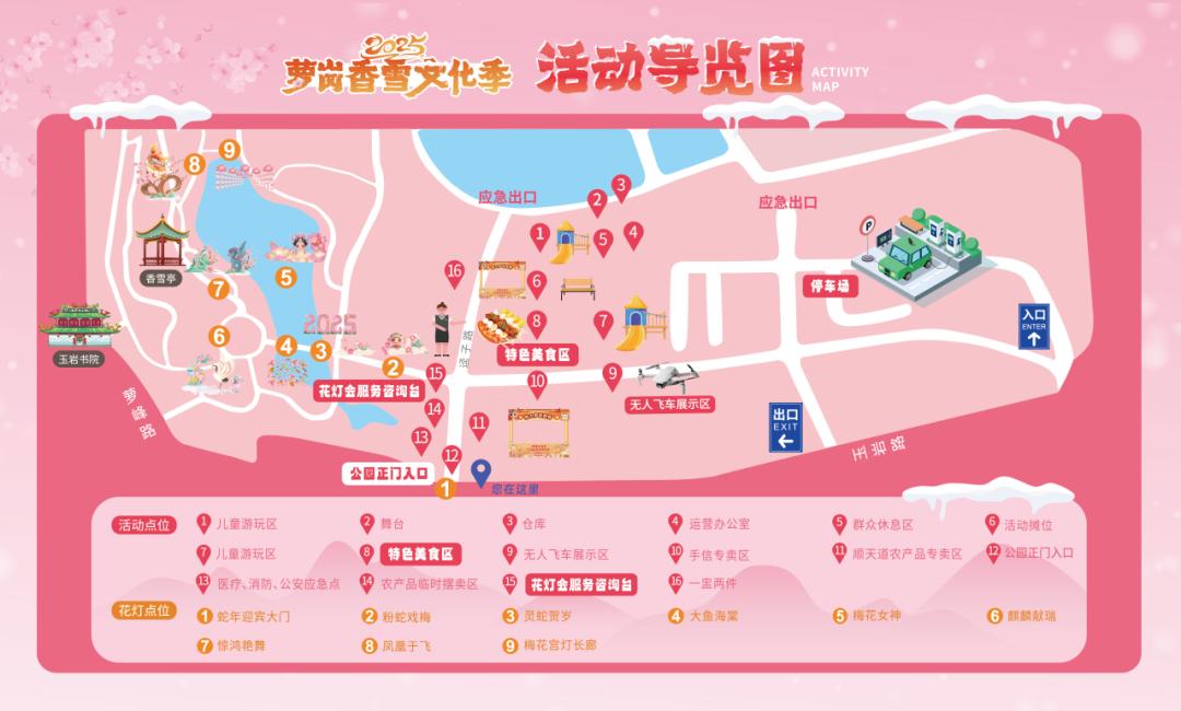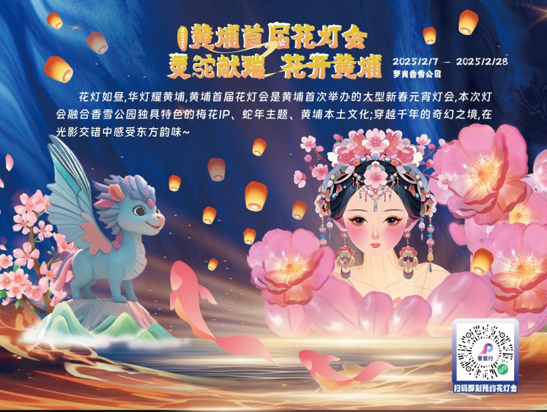 活动于2月7日至2月28日在萝岗香雪公园举行,主题为“梅花女神”,结合蛇年元素,恢复山海经神兽场景,打造东方魅力梦幻大灯。