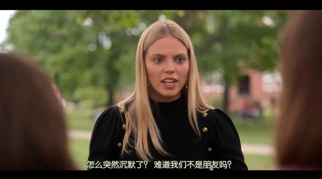 被朋友背叛的感觉让她整天对任何人都不好看。乍一看,这是典型的金发。 mean girl 形象。