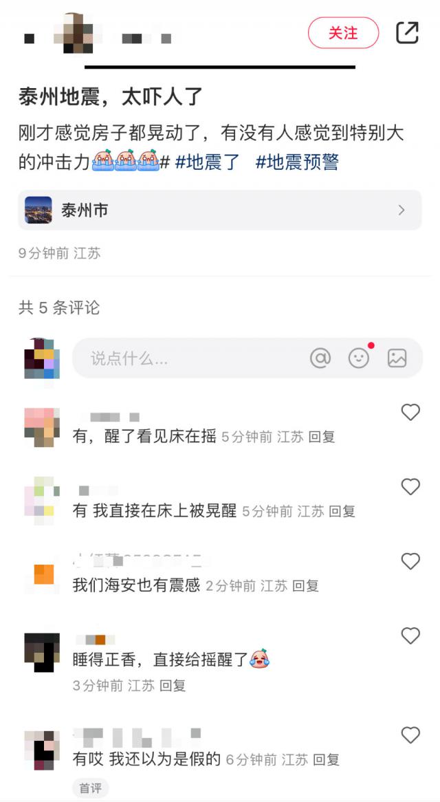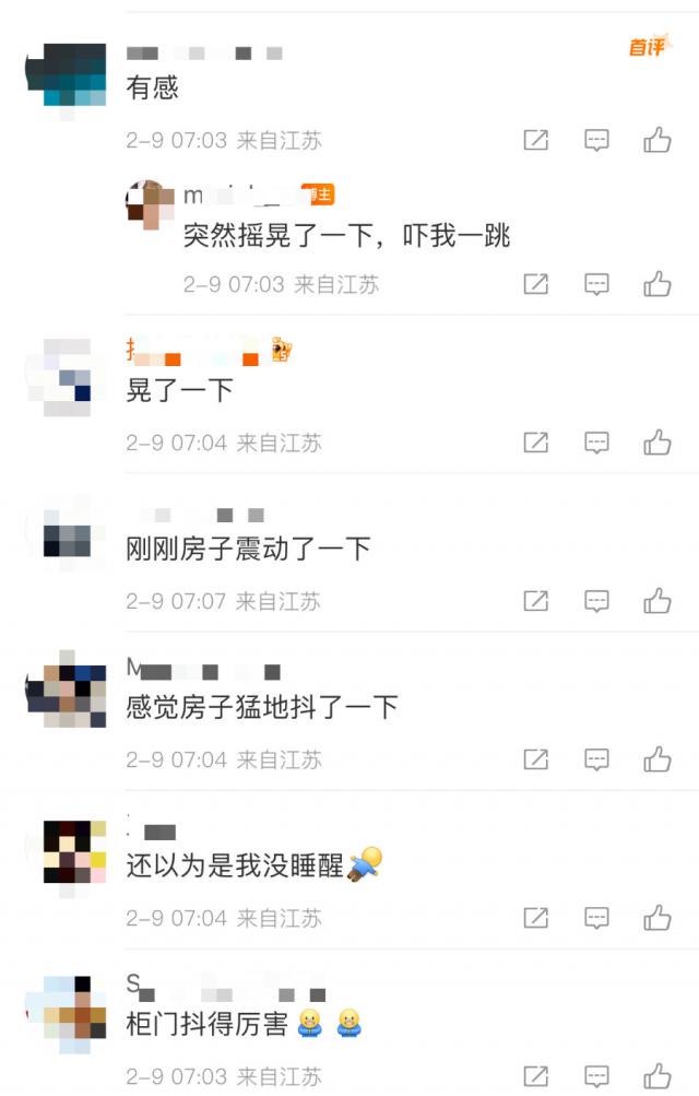 江苏网友表示震动强烈。