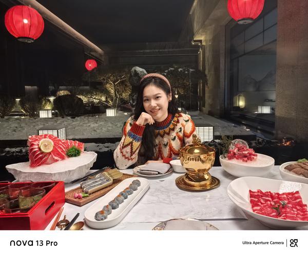 不但外表在派对上显眼、美丽,华为 nova 13 该系列的影像硬实力也同样非常出色,符合各种情人节约场景的需要。华为 nova 13 Pro 外置搭载 6000 支持万人像追焦双摄, 0.7X~5X 全焦段变焦,后置配备 5000 支持万多焦段人像三摄, 0.6X~5X 全焦段变焦。无论是大气暗调灯光的餐厅内景,还是进入光量较大的街道、雪地等外景,覆盖前后多焦段人像,华为 nova 13 该系列可以很好地捕捉情感互动的瞬间,可以满足所有年轻人拍照的需要。同时,nova 13 达芬奇人像引擎系列全新升级 2.0,可以优化人像的五个关键层面——形状、质量、光线、颜色和绘画,也支持人像的原生、质感和妆容效果。它可以通过不同风格的妆容效果,如自然、优雅或华丽,随意切换不同的上镜风格。