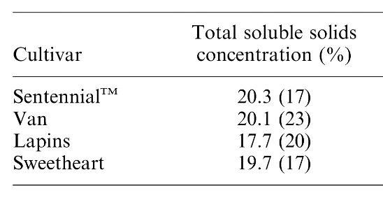 甜度打败了我们吃过的所有樱桃(最高的 26,均值 一般平均只有22 18)在一群樱桃中,可溶性风味物质的含量也很好。