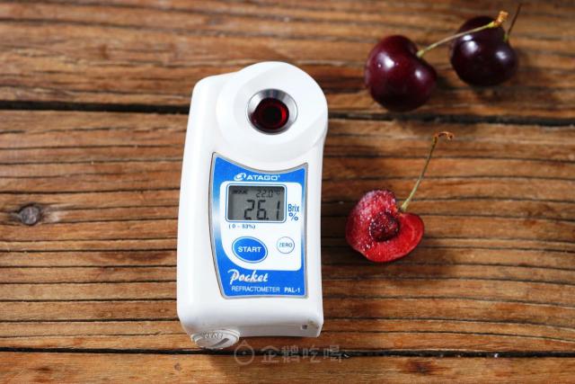 我们测试了两批,每个樱桃的甜度都直接飙升到了。26 (平均甜度也有 22),而我们往年销售的其它品种,平均甜度只有 18 上下。