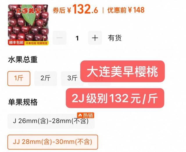 由于与果园合作 3 今年还有优惠价格:2J 等级低至 112 元 / 公斤(比去年便宜) 30 元钱)... 什么是概念?比今年大连美早樱桃� � 便宜。