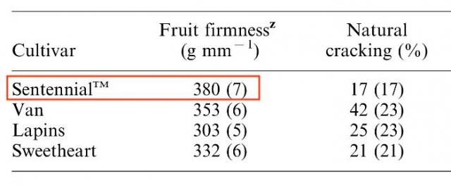 再次来扒扒它的家世:Sentennial 就是母种甜心樱桃(Sweetheart,它是由甜樱桃培养而来的,从基因上讲,它的甜度赢得了起跑线。
