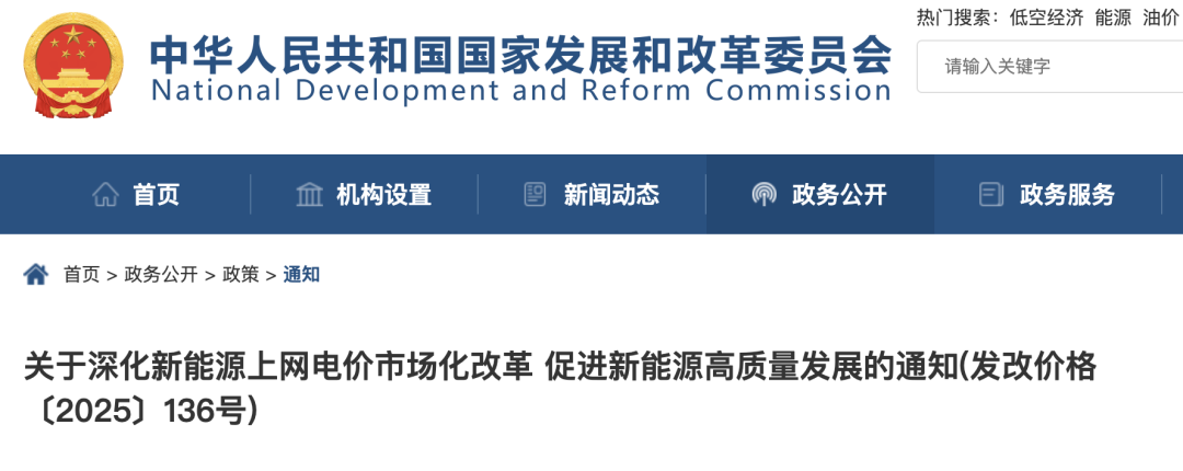 两个部门的通知:深化新能源互联网电价市场化改革