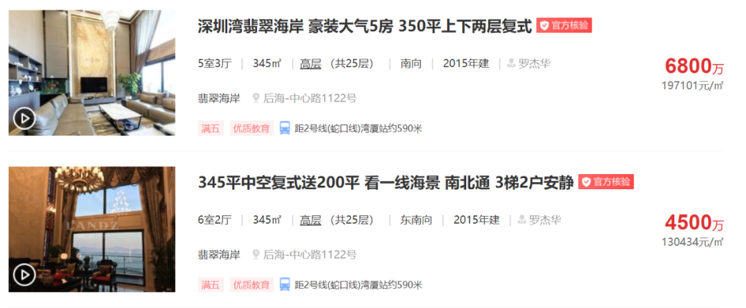 经过25年的波折,深圳湾顶豪终于要开工了,周边二手房的挂牌价格接近20万/㎡