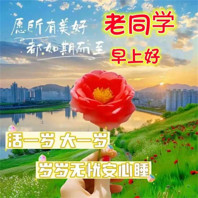 伴随着微风,祝福就这样来了。告别昨晚的喧嚣,早晨有自己的兴奋。在匆忙的脚步中,在含苞待放的花朵中,在缠绵的晨风中,在发芽的柳丝中,问候将无处不在。老同学,早上好!
