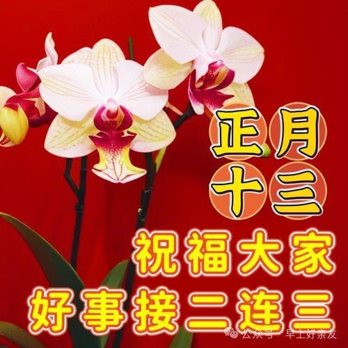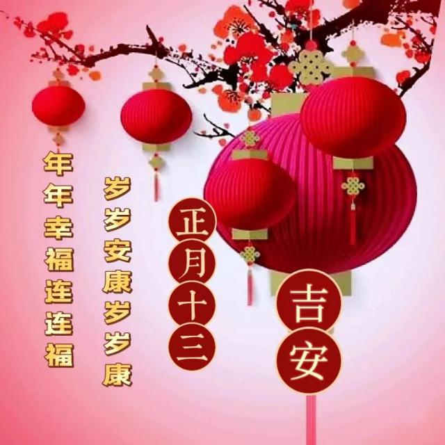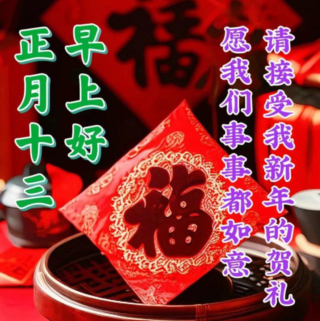 正月十三到,早上好,有一种快乐,在问候中感受;心中有一种交流;有一种友谊,在思念中思念;有一种朋友,永远在一起。早上一切都很好!