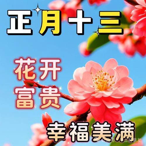 正月十三星灿烂,许愿送祝福。幸福总是伴随着风,好运伴随着影子。幸福充满了心,健康和安全总是围绕着它。祝大家财运亨通,大大小小的财富都进门了,幸福一切顺利,心里甜甜地笑着。早上好,好运,好心情!