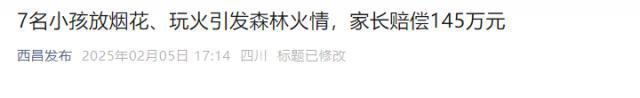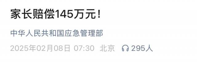 7 有名的孩子春节惹事,父母需要赔偿 145 万元!公布详细信息