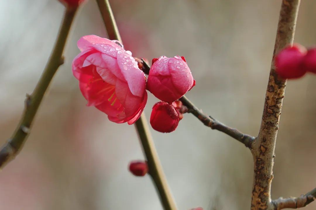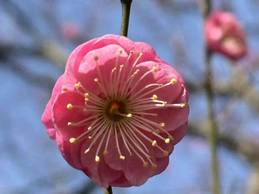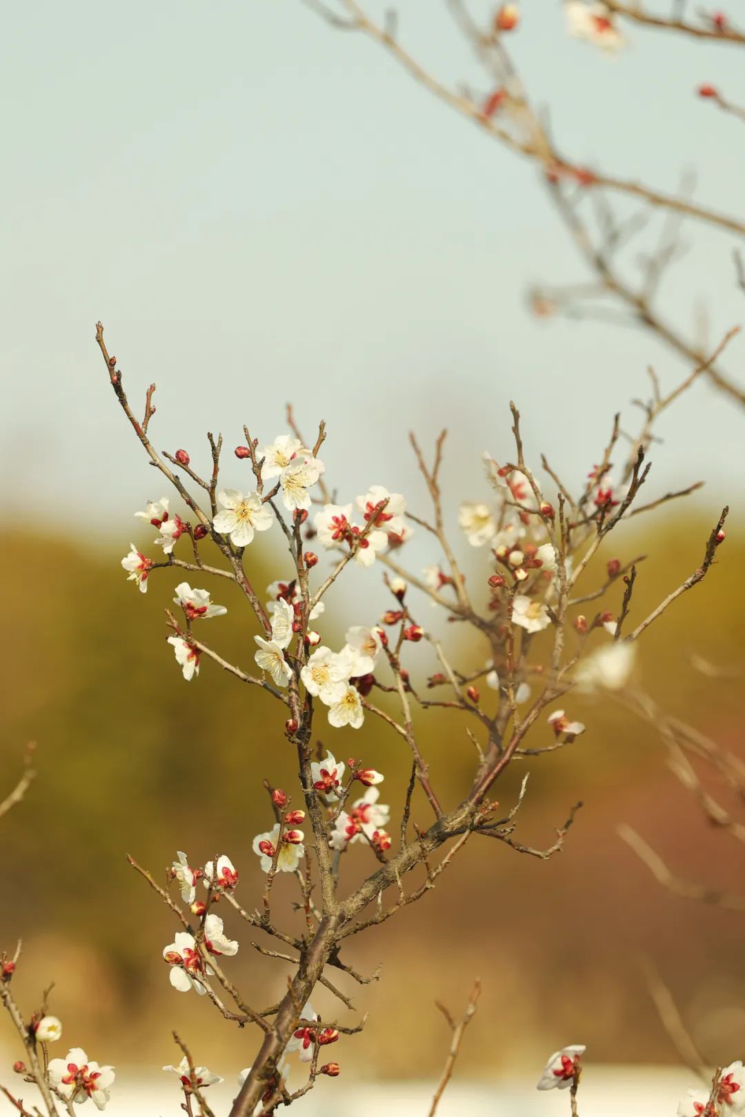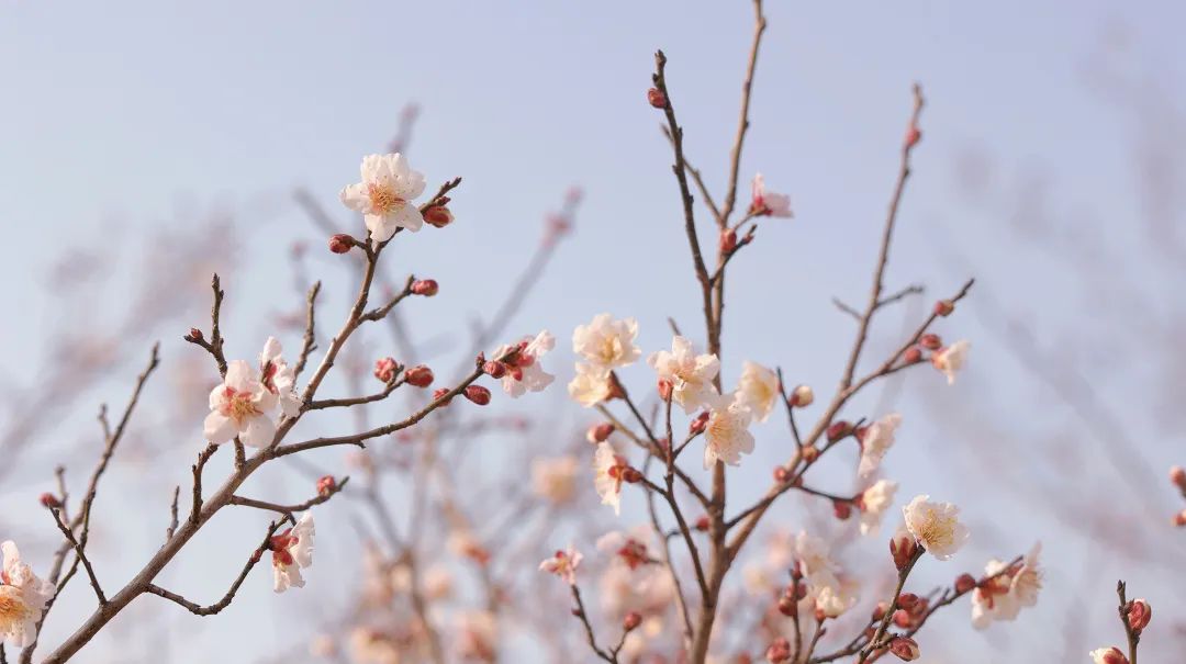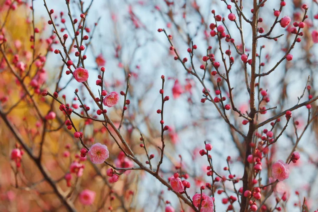 在寒冷的春天,宝山顾村公园已经悄悄地穿上了春装。春分刚过,公园里成千上万的梅花竞相吐雄蕊,与坚守枝头的腊梅一起表演“双梅争春”的盛景,为申城市民提供早春的视觉享受。