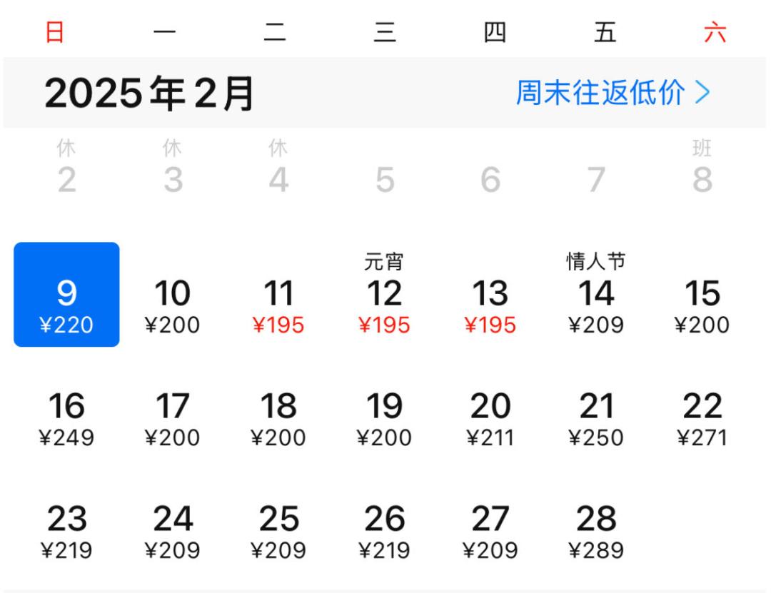包括周末假期在内,整个2月,萧山飞西安的最低票价都在200元左右,让“坐飞机吃馒头”不再是开玩笑。