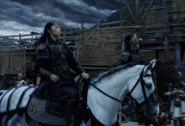 一个正面镜头切入,是观众很少在大银幕上看到的女性形象——瘦削锐利的面部线条,丹凤眼,穿着盔甲,英姿飒爽。