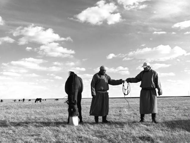 家乡是她最喜欢拍摄的主题——蒙古摔跤手站在红色幕布前冷静内敛的表情。在辽远的天空下,他们把缰绳交给了彼此的草原父子,戴着牛仔帽的男人在黑暗的篝火旁剪影...