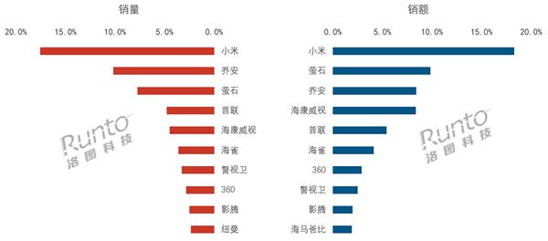 在销售份额上,乔安、萤石的销量分别为二、三个,萤石的销量超过了乔安。