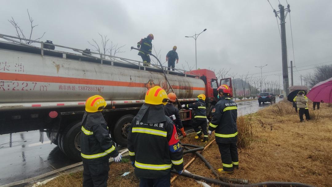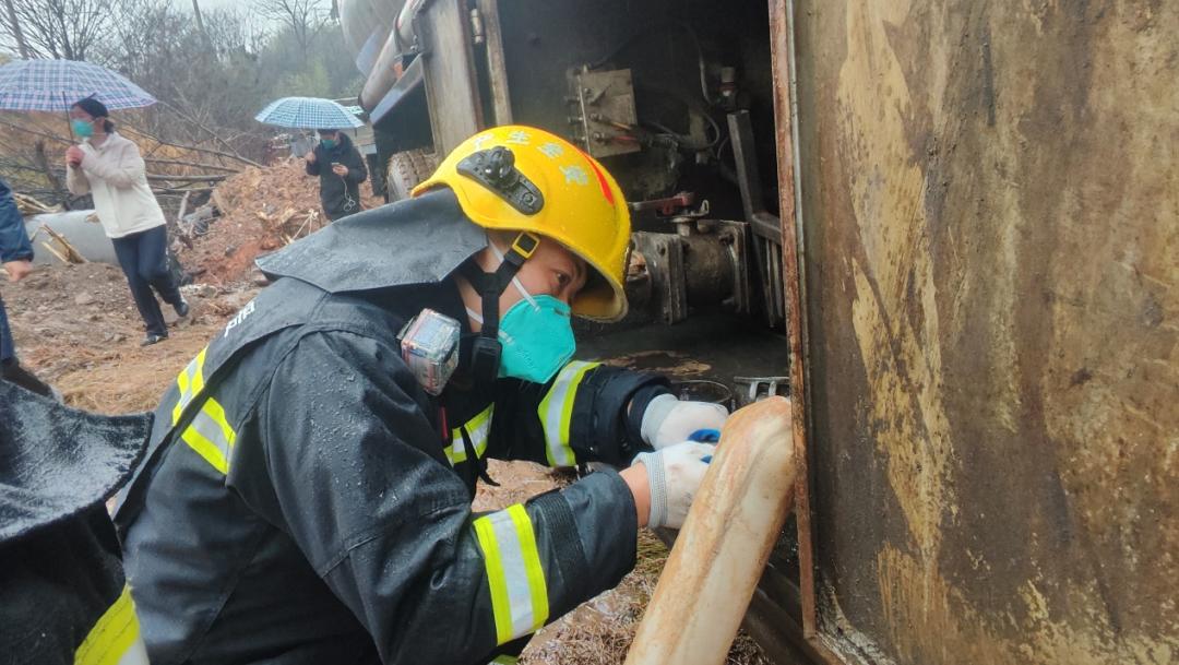 近日,在湖南省永州市零陵区康济大道与朝阳大道交界处,一辆危险化学品运输车辆翻车,车内装载的粗苯泄漏。中国危险化学品应急救援湖南队接到报警后,迅速派出9人3车赶赴现场处理。
