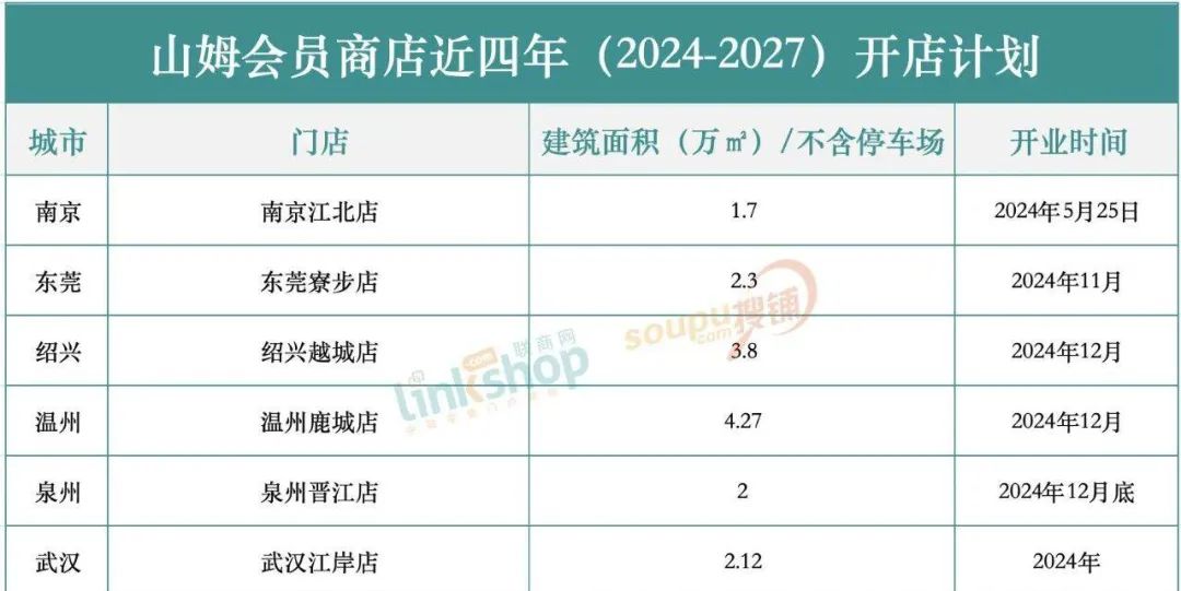 2024-2027年山姆开业名单,是“联商网”调查统计。