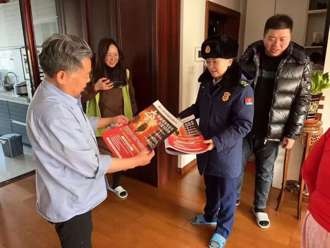 哈尔滨消防救援支队阿城消防大队联合基层力量 “敲门入户” 活动,针对农村人、年老体弱等重点群体,用通俗语言讲解冬季火灾隐患,进行消防宣传。 "进入窗户,进入走廊,进入电梯",提醒做好。 “五个一”,发放宣传资料,提高居民和商家的自我防护能力 。