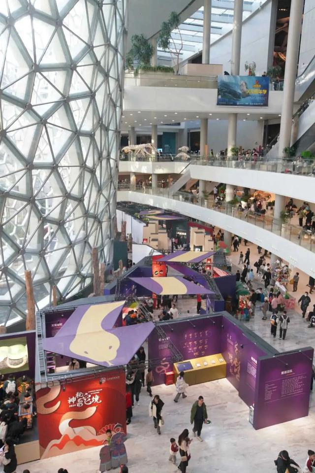 展览分为四个部分:“序厅-秘境蛇踪”“蜿蜒天下”“生存智慧”“与蛇共舞”,选择“ S “形状布局,以蜿蜒的蛇为灵感设计动线。借助宝贵的标本和互动展示,我们将为您揭开蛇的神秘面纱,探索它们的进化路径和生存智慧。