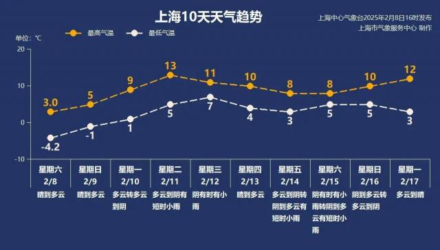 从周二开始,申城将开始频繁的阴雨模式,温度波动较大,最低。 1~7 ℃,最高 8~13 ℃,伴随着雨水,体验会变得潮湿。