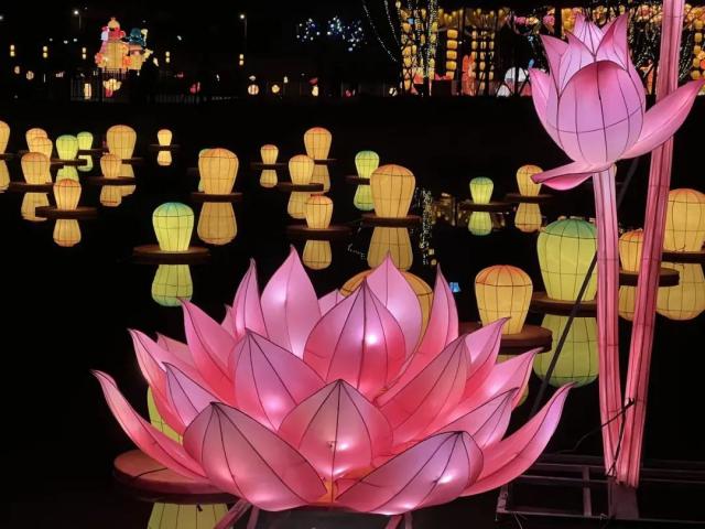 灯亮了,整个美兰西湖公园被各种灯笼装饰得五颜六色。从空中俯瞰,灯笼巧妙地编织成一个巨大的“三”字。“鱼”在“荷花”丛中游动,围绕着罗店龙舟灯笼,让古老的水乡魅力凸显在我们面前。在此期间,罗店龙舟、罗店鱼丸等具有罗店非物质文化遗产特色的灯笼成为市民争相“打卡”的场景。