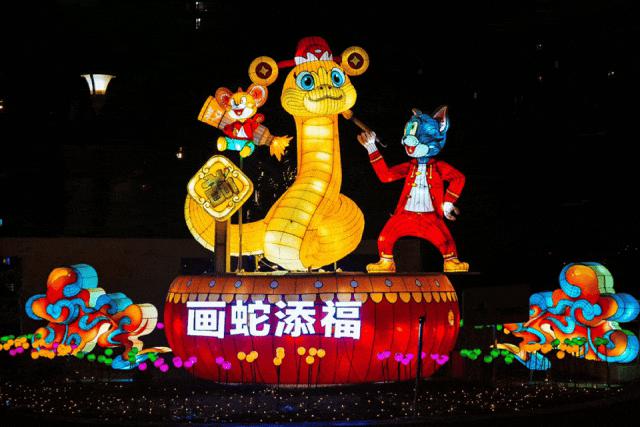 灯火通明的时候,莘庄的大街小巷被五颜六色的灯光照亮,各种蛇年主题灯亮起,如“画蛇添福”、“蛇”、“蛇得花”等。 , 给市民带来一场美丽的视觉盛宴。