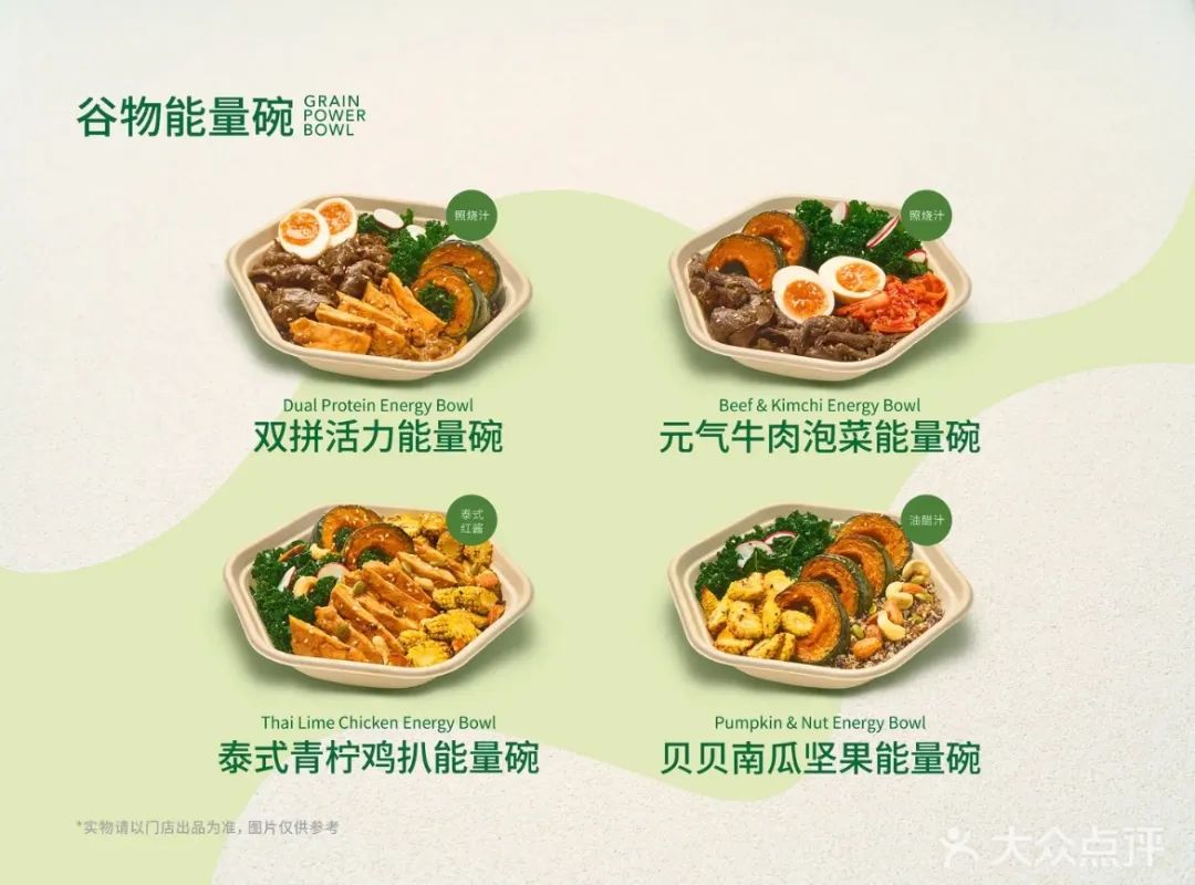 根据奈雪的官方小程序,该店除了销售品牌常规的茶咖啡和欧式包包外,还推出了四款“能量碗”清淡食品,分别是双能量碗、泰国柠檬鸡排能量碗、活力牛肉泡菜能量碗、贝贝南瓜坚果能量碗,价格在23.8-28.8元之间。据店员说,奈雪green店的清淡食品全天供应。