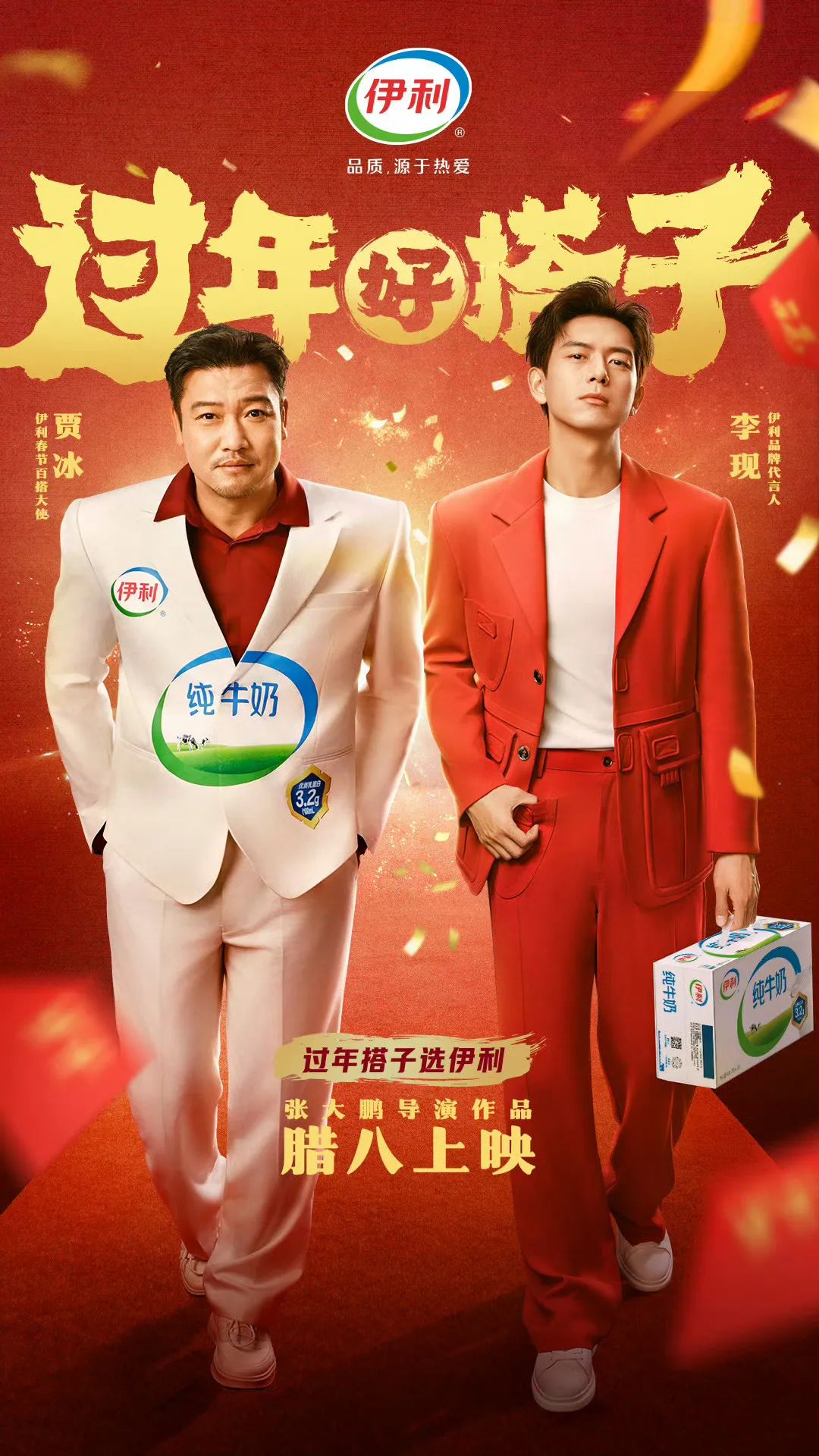 首先,伊利于1月3日发布了与演员李现和贾冰的贺岁片预告和合作海报,并正式宣布将于腊八(1月7日)正式上映。