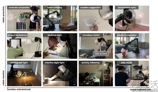 研究人员发现,除了语言之外,人类的肢体语言和空间距离也传达了关键信息,因此他们专门为这款台灯机器人设计了一套表达式驱动动作,使其能够通过动作传达自己的“精神状态”,从而构建了设备与用户互动的新范式。
