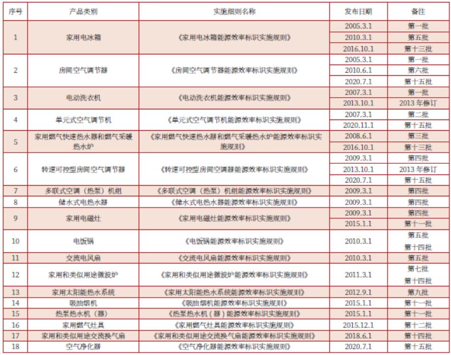 如前所述,为了配合能效标识制度的实施,相关标准化组织制定了能耗等级标准,并针对冰箱、空调、洗衣机、电磁炉、电饭煲等18种家用电器的标准进行了迭代,保证了能效标识制度的实施。