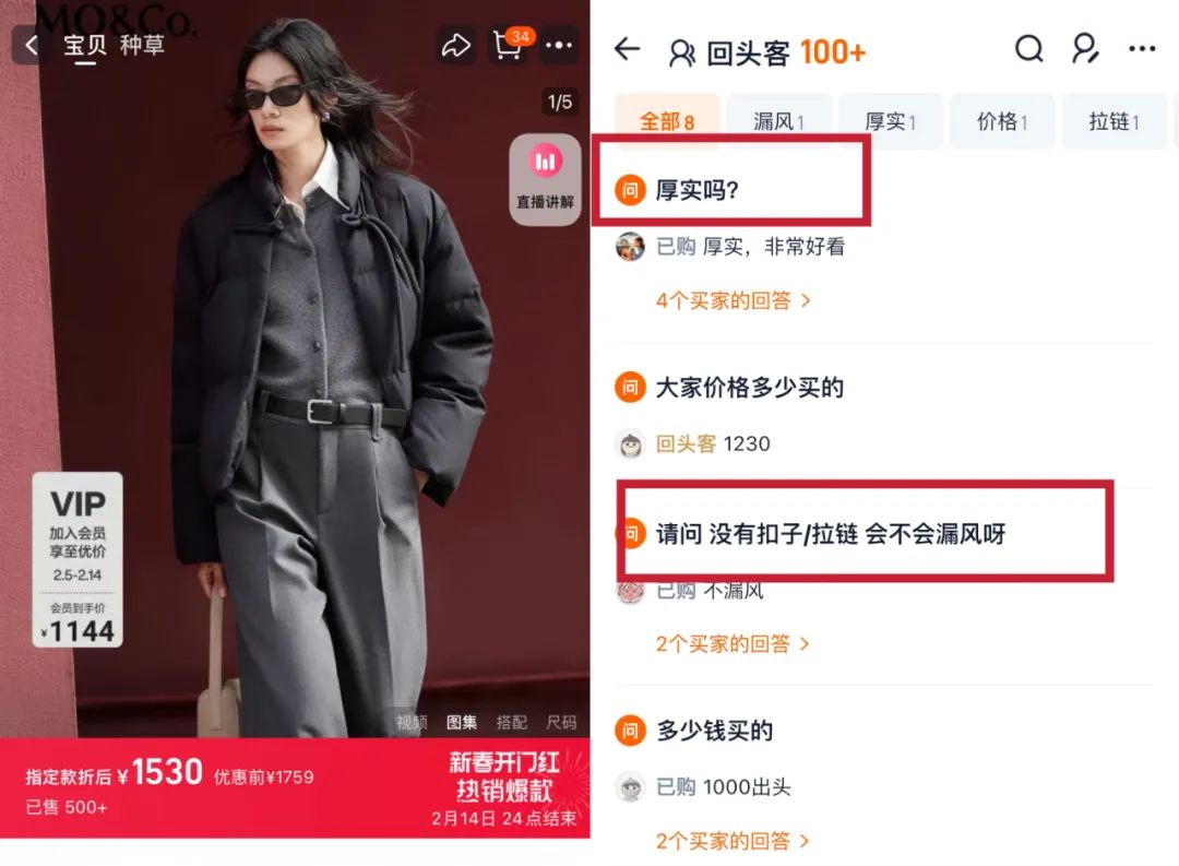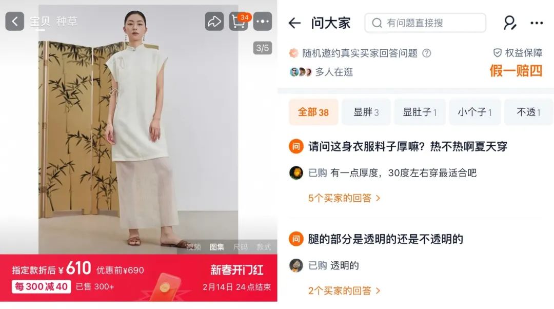 然而,在冬天,由于布料光滑、宽大的外套、袖子和纽扣的特点,新中式风格被消费者担心“穿冷衣服”。“没有锁,会不会漏风?”“薄不薄”成为商品提问区的热门问题。