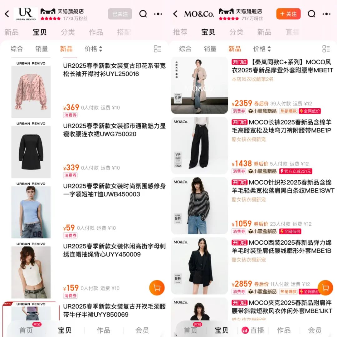 而且天猫moco官方旗舰店,去年新中式相关产品数量53款,总销量近万件。2024年冬季和2025年春季新产品,新中式产品数量为24款,已售出约2000件。