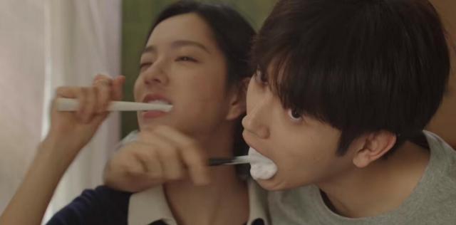 甚至刷牙,都是满屏的粉红色泡泡,这样的爱情真的让人觉得甜到掉牙。
