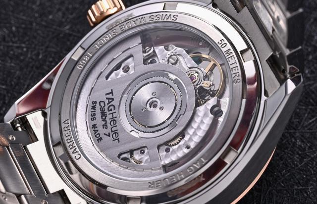 手表底部采用背透式设计,内部配有背透式设计。 Calibre 7 配有实用日期功能的自动机械机芯,满弦后机芯具有实用的日期功能。 56 小时动力储存,日常行走时还算精确可靠。