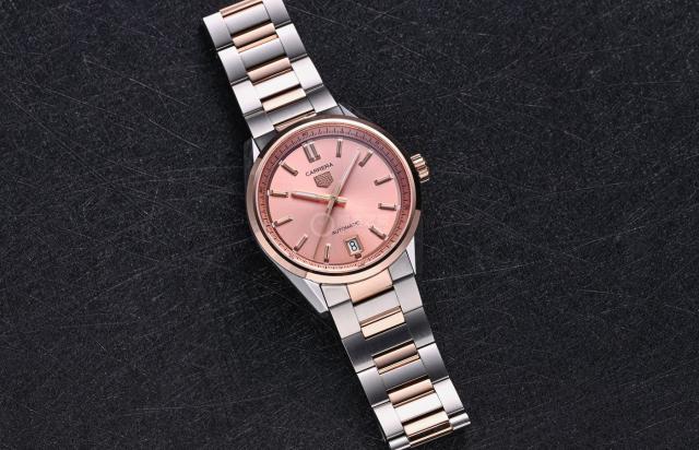 自 1860 年爱德华 ·豪雅(Edouard Heuer)泰格豪雅自瑞士圣伊米耶创立造表作坊以来,一直以先锋精神书写造表行业的传奇。1963 2008年诞生的卡莱拉系列,不仅承载着赛车运动的热情基因,而且以优雅的美学重塑了现代手表的审美理念。2023 这一系列年推出了精致华丽的一系列。 36 mm手表很受欢迎,去年品牌为这个精致系列增添了更多的风格作品,其中这款铜色款特别适合年轻情侣佩戴。以下请看:(手表型号:WBN2350.BD0000)