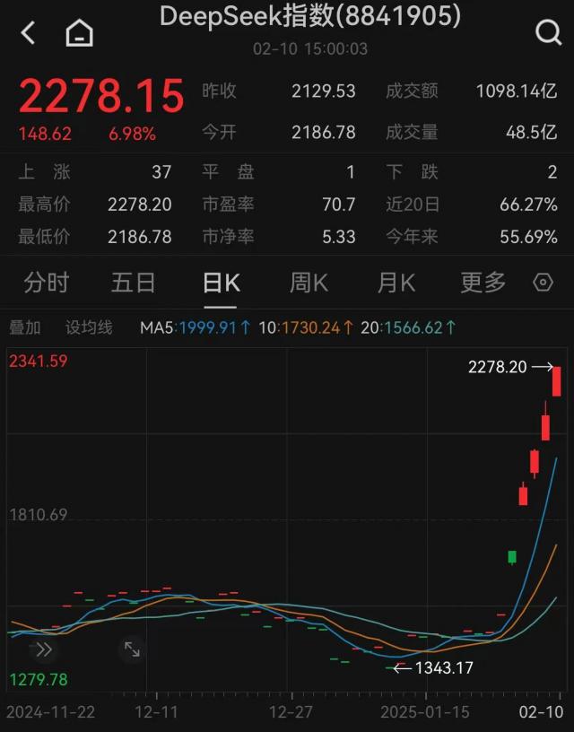 2 月 10 日,上证指数取得三连阳,TMT 产业全面上涨,DeepSeek 主题不断发酵。