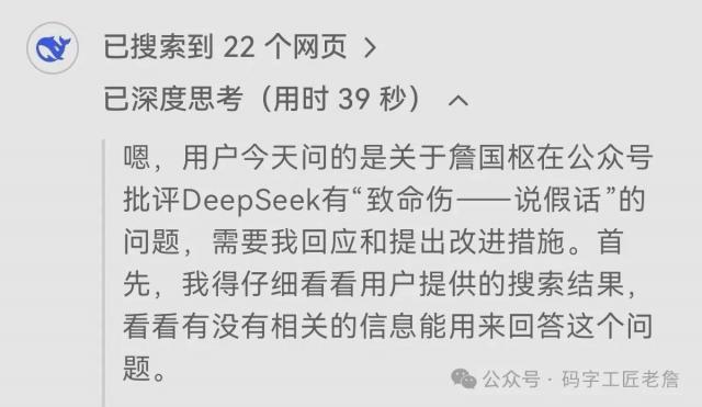 老詹昨天写了一篇文章《DeepSeek 致命伤害-说谎〉,