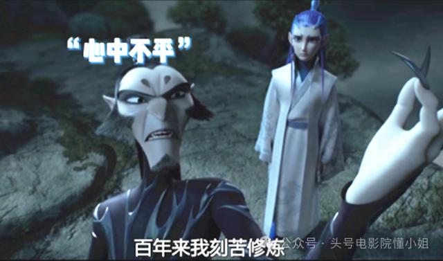 《哪吒 二是陈塘关被哪吒父母留下喝了两杯的申公豹,突闻族人被杀,父亲被哪吒断臂的坏消息,镜头给了他愤怒和仇恨的表情。
