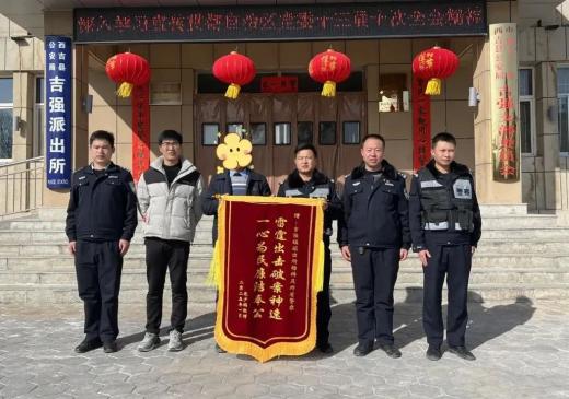 吉强派出所值班民警接到报警后迅速响应,依靠“专业” 机制 大数据“新的警务运行模式,经调查确认,丢失的手机被群众拿走,警方立即与群众取得联系。通过耐心沟通,群众将丢失的东西归还给连先生。失而复得的连先生特别激动,不停地向警察道谢。二月八日下午,连先生来到派出所赠送锦旗,高度赞扬民警高效务实的工作作风和为民解忧的服务态度。