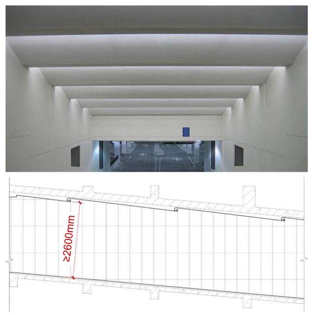 换言之,当开发商注意到车库入口的梁下净高时。 2.6 米以上