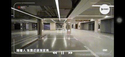由于人、车靠近,智能感应照明使地下车库的灯光逐渐变亮,包括停车位在内的灯光也会随着感应而变化。