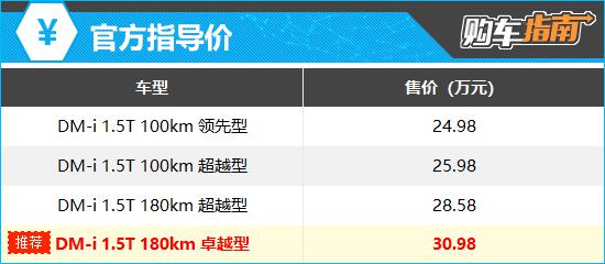动力方面,新车配备第五代 DM 技术,由 1.5T 由发动机和电动机组成,发动机的最大功率 最大扭矩115kW 225N · m;电机总功率 总扭距200kW 315N · m;CLTC 纯电续航里程分别为 100km 和 满油满电综合续航里程最长可达180公里。 1060km。