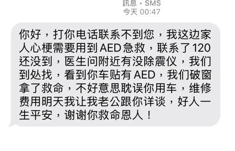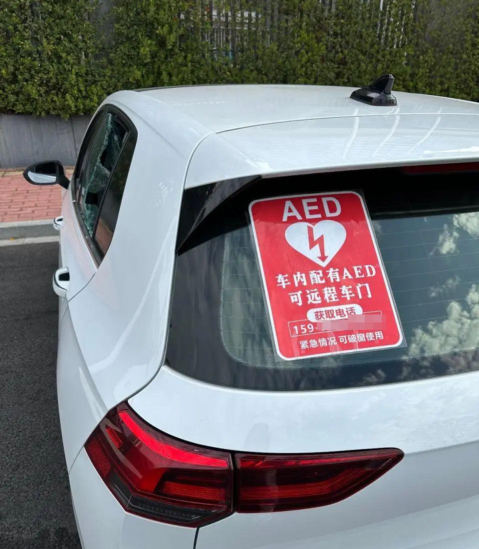 为了帮助更多的人,他把AED放在车内,并在车后窗上贴上了“车内配有AED”的标志。他说:“如果我把它放在车里,当我开车出去的时候,真正需要的人看到后会主动拦住我,这样救人的机会就会更大。这种爱相当于在后面传播。如果我只把它放在某个地方或者某个角落,那么它就局限于一小部分人,意义不大。”