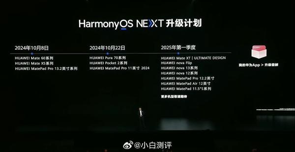 今年,根据华为公布的适应计划, Q1,华为 Mate XT 非凡大师、nova Flip、nova 13 系列、nova 12 系列、华为 MatePad Pro 12.2、MatePad Air 12 以及 MatePad 11.5 S 纯血鸿蒙系统将适用于系列型号。
