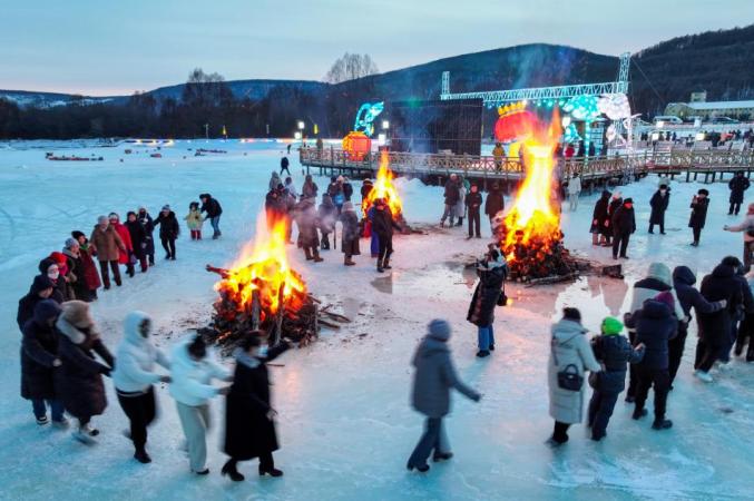 近几年来,阿尔山市白狼镇充分利用冬季旅游资源,深入挖掘传统民俗文化,推动文化旅游产业蓬勃发展。作为当地一张亮丽的名片,白狼镇滚冰文化节已经连续举办了九次。这个盛会不仅展现了边境城镇民俗的独特魅力,也让“冷资源”释放了“热效应”。越来越多的游客被吸引到这里,互动体验热“雪”林俗文化,感受冰雪世界的无限魅力。