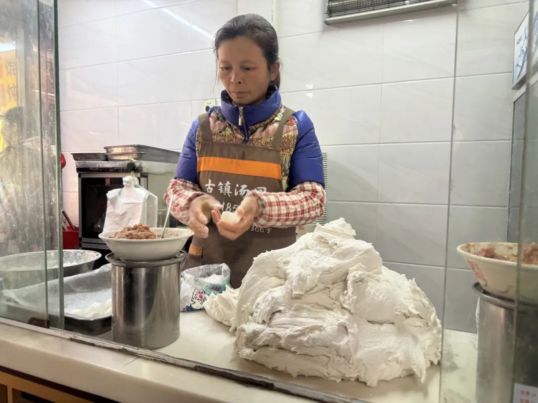 作为江南水乡的代表,朱家角古城一直保留着许多传统习俗和饮食文化。在这些食物中,手工汤圆因其独特的制作工艺和口味,成为元宵节不可缺少的食物。“古城汤圆”是一家老式的汤圆店,一大早工作人员就忙得不可开交,一边接待客人,一边熟练地包裹着汤圆。店内提供鲜肉、芝麻、豆沙等口味的汤圆,每一款都遵循传统的手工工艺,保证每一款汤圆皮薄馅足,口感香糯。“我们经营饺子店已经20多年了。我们自己买了大米,凌晨4点开始磨,早上6点开始包饺子。现在磨的饺子有嚼劲,味道很好。随著元宵节的临近,我们收到了很多订单,元宵节当天来我们店里取货。”古城汤圆店主吴苏斌说。